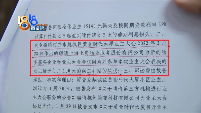 绍兴黄金时代大厦业委会 包副主任:我们的老物业,每一次业主大会,它都是采取各种手段阻止的,参会率不达标,然后我们就效仿其它小区的做法,给到参与的业主一个微补贴。我们参会并不是说非要你同意,就是因为响应了政府指导的,让我们走法律程序,我们一共打了12场官司,你想想好了,哪一个业委会一年半里面会经历12场官司,你有听说过吗?我们基本上都是被告,老物业就是不断地通过诉讼,来争取更久地滞留在本大厦。