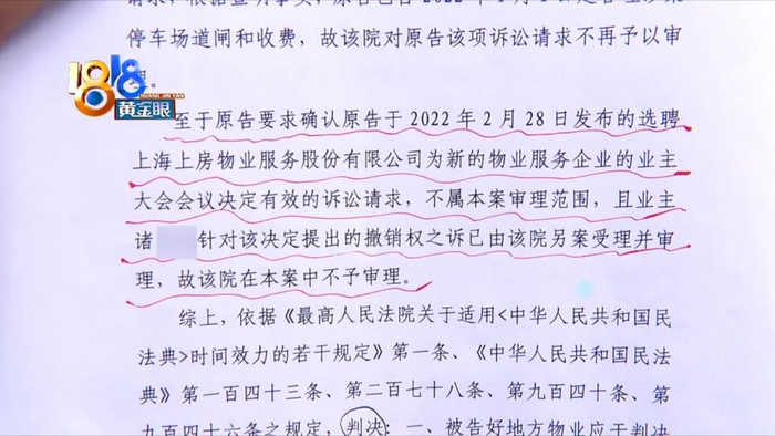 但滕师傅又用红笔画出一段话:关于业委会选聘出来新物业,并要求法院确认决议有效的请求,法院认为不属于本案审理范围,已经另案处理。