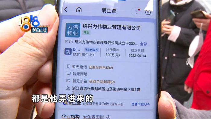 绍兴黄金时代大厦业主 滕师傅:你们去看一下,这个里面叫那个绍兴力伟物业,他已经卖掉了,120万卖掉了,通过上房物业卖给他们了,社区里面他有留底的。他说他是业委会总顾问,已经两次了,上次叫成裕物业,这次叫什么呢,力伟物业,都是他弄进来的,我们都有证据的,是他们物业进来的人跟我们讲的。