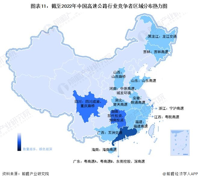 由于中国地理环境以及区域间经济发展不平衡等原因,行业整体布局密集情况与区域经济发展进程呈正相关关系;同时,由于省际规划等因素,高速公路企业长期以来存在地域壁垒。