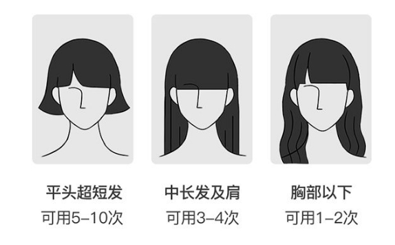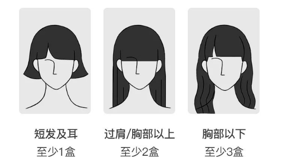 建议短发及耳的用1盒;过肩/胸部以上的用2盒;胸部以下用3盒。
