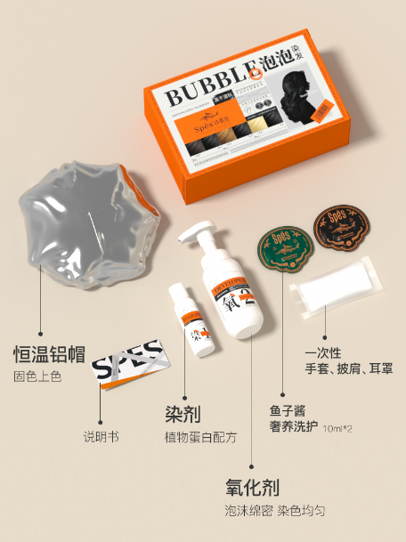 这款spes泡泡染发剂,添加了8重氨基酸,配方非常温和,滋润呵护头皮,不伤发质。