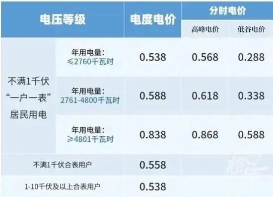 经查询,在目前上海市居民生活用电电价表中,一户一表居民用户按照阶梯递增,其中第一档的未分时电价为每度0.617元,分时电价为峰时段每度0.617元,谷时段每度0.307元;第二档的未分时电价为每度0.667元,分时电价为峰时段每度0.677元,谷时段每度0.337元;第三档的未分时电价为每度0.917元,分时电价为峰时段每度0.977元,谷时段每度0.487元。相关数据与网传截屏所称完全不同。