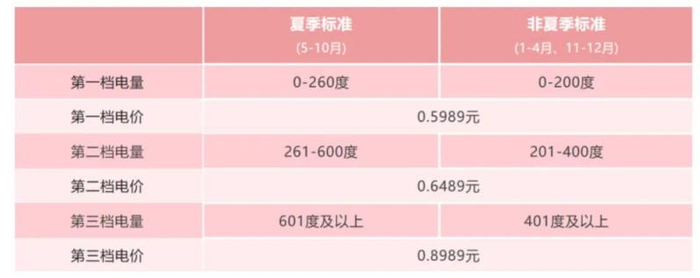 此外,广东省居民阶梯电价分夏季与非夏季标准执行,每年的5~10月执行夏季标准,1~4月、11~12月则执行非夏季标准。电价是每跨一个阶梯档级,就上升一个价位。冬季(非夏季)二档收费比夏季标准少60度,三档收费比夏季标准少200度,因此更容易跨到下一个收费档位。