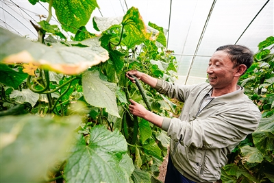 “深入实施‘三乡工程’,村里的基础设施不断完善,村庄变得越来越干净整洁,村民的生活越过越红火。看咱这大棚里的蔬菜长得多好,绿油油的。”吉仓村党支部书记冶德全自豪地掰着手指算着:“咱们镇的蔬菜年产量能达到5405吨,单个棚年平均产量就有4.5吨,看着大家的收入不断增加,我深感欣慰。”