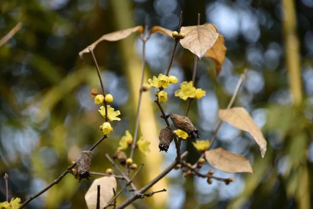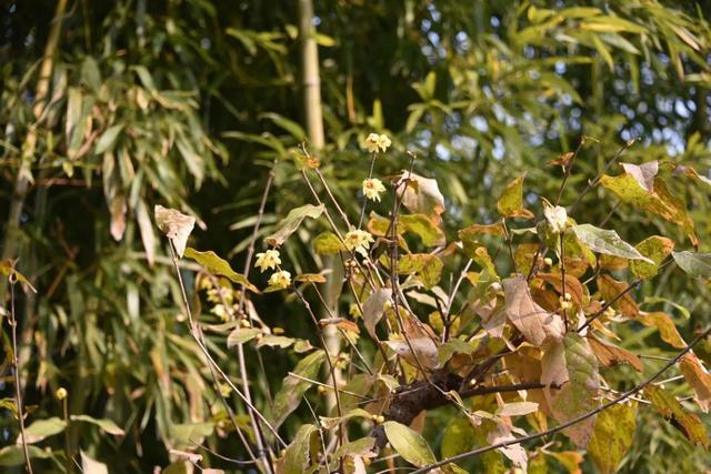 蜡梅的花叶同枝是一种较为罕见的现象,通常情况下,蜡梅是在叶子掉光后才开始开花,出现这种现象主要和气温有关。冬季以来,低温天气持续时间较短,导致蜡梅树上的老叶还没掉完,而花苞因低温的刺激逐渐开放,便产生了“花叶同枝”的现象。