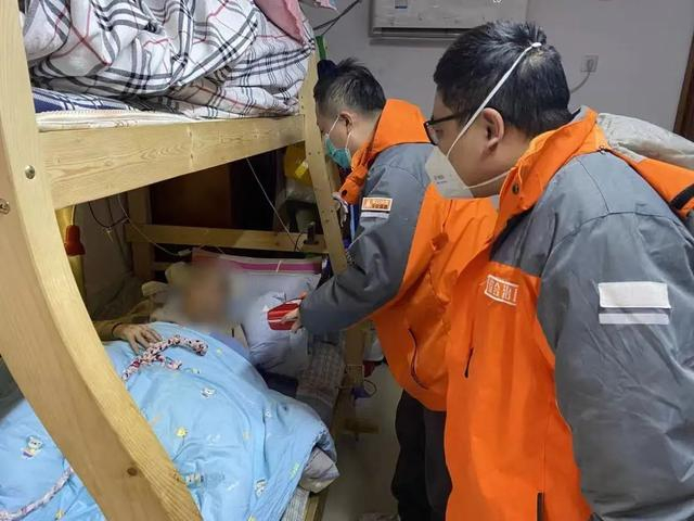 老杨和老伴谭阿姨是一对空巢老人,子女都在外工作。前阶段,社会面迎来感染高峰,两位老人也不幸“中招”。事发当天,谭阿姨本想从房间走向客厅,但身子孱弱,没走几步路就一阵眩晕摔倒在地,额头因撞击地面流血不止,随即昏了过去。老杨因发烧也无力将谭阿姨扶起来,十分焦急。