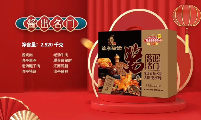 “酱出名门”酱卤礼盒以极高的品质和性价比为主要卖点。礼盒中八款产品全是极具价值感的酱货产品。流亭酱鸭酱香浓郁,江南鸭腿丝丝入味有嚼劲,流亭熏鸡肉嫩味鲜,老汤腱子肉酱香醇厚唇齿留香都是老少皆宜的美味,每款都有独到的味道。精致的礼盒包装用于春节送礼心意满满,餐桌招待客人或者家庭聚餐也能够免去许多准备餐品的烦恼,轻松备出一桌丰盛大餐。