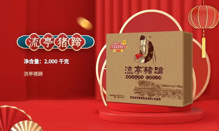 流亭猪蹄是山东的一道名吃,更是青岛的知名特产。“青岛系列”礼盒特别推出了一款流亭猪蹄礼盒,礼盒中4只大分量的流亭猪蹄,满足猪蹄爱好者的胃。流亭猪蹄的猪蹄全部选用新鲜谷物饲养猪前蹄,10:1严苛选材标准,所选猪蹄大小匀称,皮肉比均衡,配以十八种名贵香辛料,十二道工艺,老汤慢炖去脂入味。猪蹄,皮弹肉嫩,胶原蛋白丰富,搭配清爽的蹄冻,清爽鲜香,老少皆宜,是餐桌的上好佳肴。