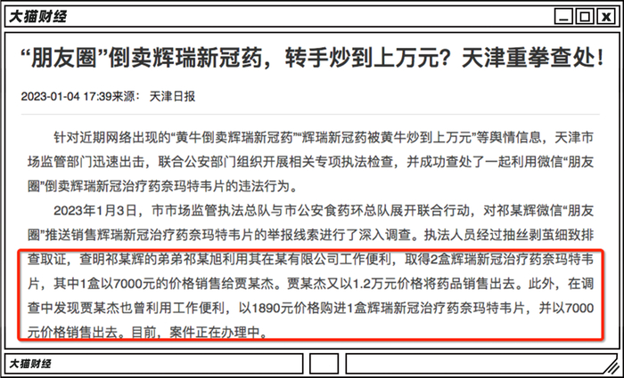 一盒售价2980元的辉瑞新冠药Paxlovid,第一次转手,可以加价到7000元,二次转手,售价就变成了1.2万,过了两个手,价格涨了3倍多,当然,如果进价更低,赚得也就更多。