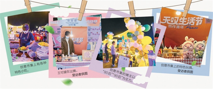 创意市集上有各种特色小吃。 王可媛在出摊。受访者供图 创意市集的摊主以“80后”“90后”为主力。 创意市集上的特色玩偶。 受访者供图
