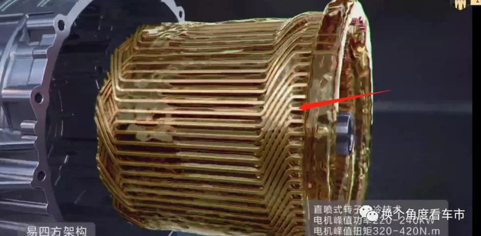 其次,每组轮边电驱动的最大输出功率范围在220-240千瓦,且采用扁线绕组技术+主动油冷散热策略。