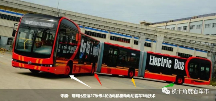 比亚迪旗下的商用车部门,早在2019年4月就发布了一款为南美某国市场研发的3段铰接电动客车。这款编号为K12A型电动客车,配置了全新4组轮毂电机驱动系统及车身姿态控制策略。