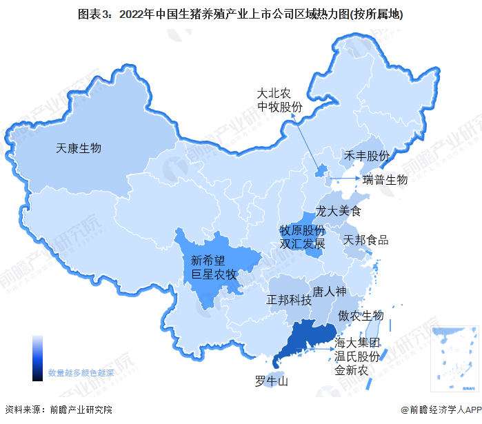 生猪养殖产业链区域热力地图:南方地区分布最为集中