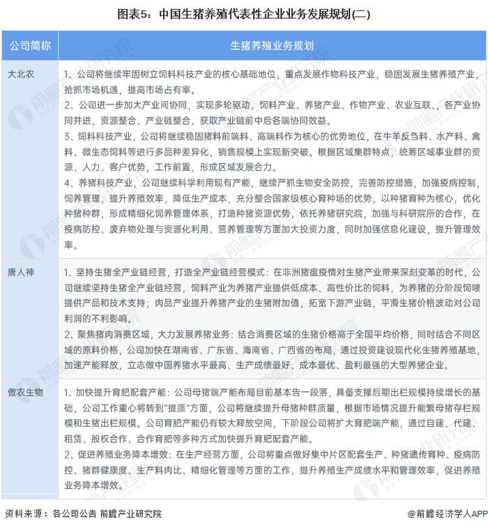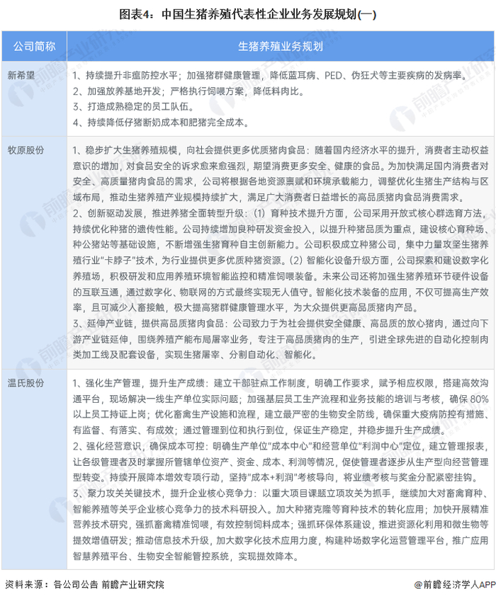 生猪养殖行业代表性企业业务发展规划