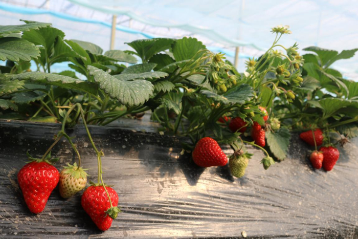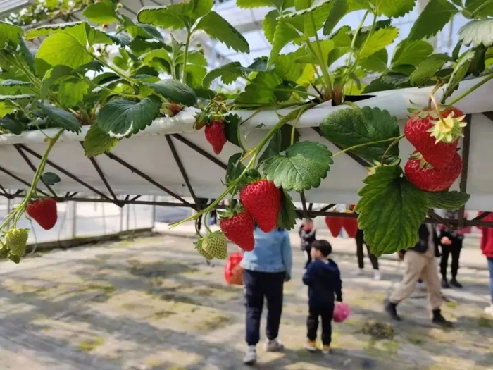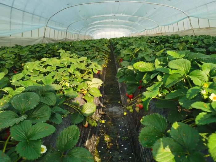 目前,公司草莓种植面积达200亩,全程采用绿色防控技术,水肥一体化,采用自然蜜蜂授粉,保证了每一颗草莓香、甜的口感......点耕草莓园里一派田园风光,棚里一颗颗红彤彤的草莓泛着让人垂涎欲滴的光泽。