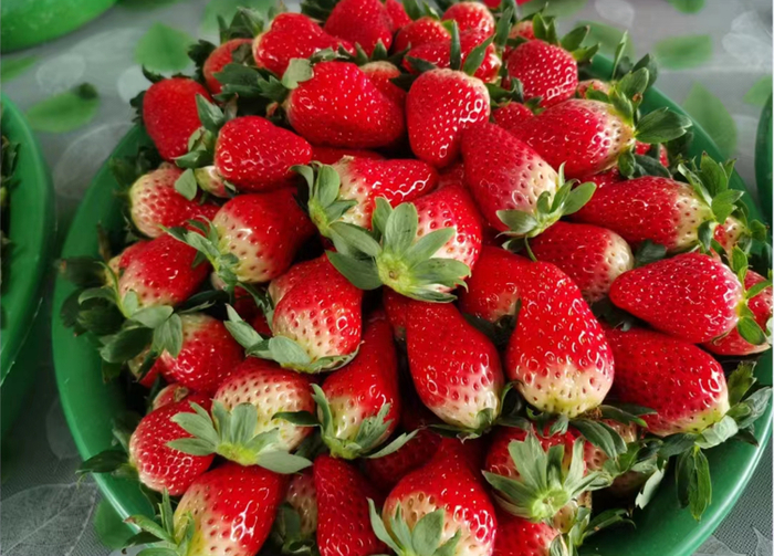 合作社生产的草莓色泽鲜艳,果实柔软多汁,甜酸适口,营养丰富,已通过绿色食品认证,安全又可口。
