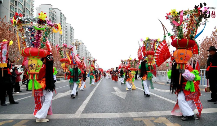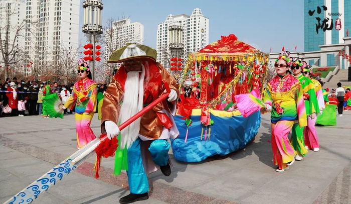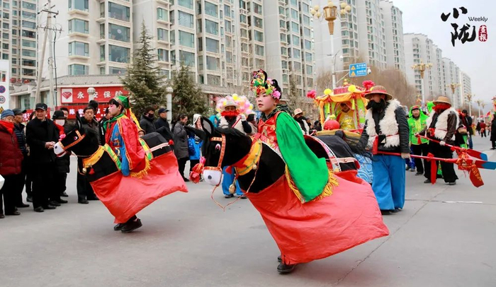 如今,社火的服装、道具更加精致,节目编排也更加整齐有序,同时在保留传统故事为内核的基础上,艺人还在表演中融入了民间曲调,结合时代元素进行编创。