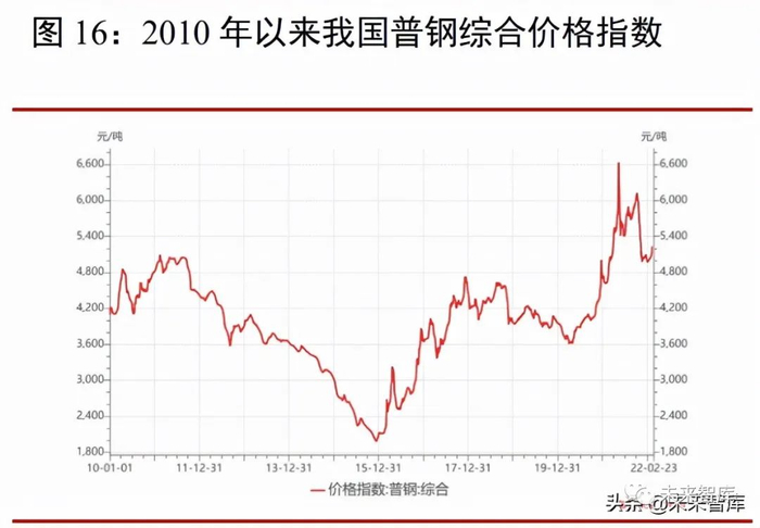 自 2015 年底国家提出供给侧结构性改革以来,“十三五”期间钢铁行业化解过剩产 能工作持续推进。2016 年 2 月,国务院印发《钢铁行业化解产能过剩实现脱困发展的意 见》,指出从 2016 年开始,用 5 年时间再压减粗钢产能 1 亿—1.5 亿吨,行业兼并重组 取得实质性进展,产业结构得到优化,资源利用效率明显提高,产能利用率趋于合理, 产品质量和高端产品供给能力显著提升,企业经济效益好转,市场预期明显向好。2016 年我国钢铁行业超额完成当年去产能目标。当年普钢综合价格指数结束了 2012 年以来 的连续下滑,当年同比上升 14.95%。相应的,2016 年钢铁行业大中型企业利润总额为 1585.87 亿元,同比扭亏。