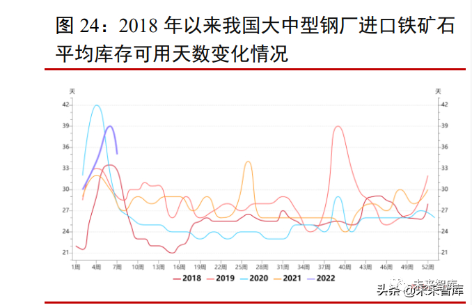 2022 年 2 月 15 日,市场监管总局、国家发展改革委、证监会联合发声,提醒告诫 部分铁矿石贸易企业不得编造发布虚假价格信息,不得恶意炒作、囤积居奇、哄抬价格, 号召相关国有企业主动承担社会责任,助力政府保供稳价。随着近期有关部门针对铁矿 石价格异动告诫发声并逐步采取监管措施,铁矿石价格回调明显。除了政府监管之外, 铁矿石下跌的基本面原因包括:(1)下游铁水产量需求较弱,年初以来我国(样本数 247 家)日均铁水产量虽然相比去年年底有季节性回升,但低于 2021 年和 2020 年同期水平;(2)库存处于高位,2021 年年末以来,我国 45 个港口进口铁矿石港口库存持续走高, 2022 年以来,铁矿石库存量创 2018 年以来同期新高。