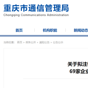 重庆市通信管理局关于拟注销重庆水手文化传媒有限公司等69家企业增值电信业务经营许可的公示