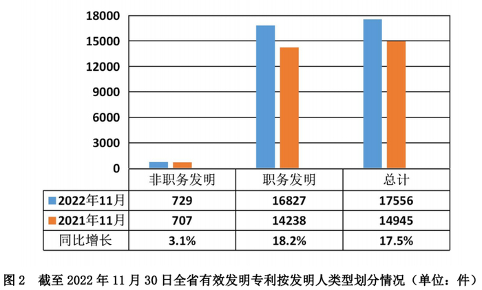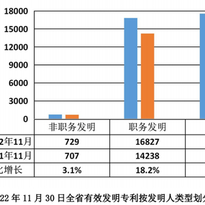 1月9日,记者从贵州省市场监管局获悉,截至2022年11月30日,全省有效发明专利近1.76万件,同比增长17.5%。