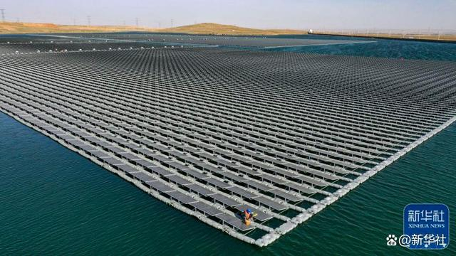 ↑这是2022年6月17日拍摄的国家能源集团宁夏电力公司宁东电厂3×5.98兆瓦漂浮分布式光伏发电项目(无人机照片)。新华社记者 王鹏 摄