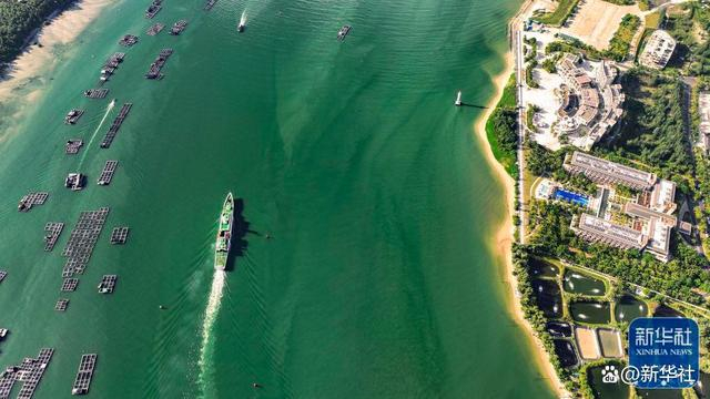 ↑2022年8月1日,中国海警局直属第四局永兴舰在海南清澜港巡航,为海南自贸港建设保驾护航(无人机照片)。新华社发(黄星朝 摄)