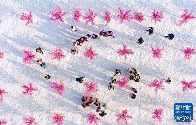 ↑2022年1月10日,宁夏医科大学的留学生在稻渔空间参加雪地跑比赛(无人机照片)。当日,宁夏医科大学的27名留学生在老师的陪同下,来到银川市贺兰县稻渔空间体验冰上爬犁、冰上滑车、雪地跑和雪圈等项目,感受中国浓厚的冰雪氛围,共同迎接北京冬奥会的到来。新华社记者 冯开华 摄