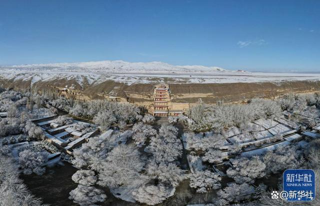 ↑这是2022年3月25日拍摄的敦煌莫高窟景区雪景(无人机照片)。3月24日至25日,甘肃省敦煌市迎来一场春雪。雪后的世界文化遗产敦煌莫高窟银装素裹,景色如画。新华社记者 张智敏 摄