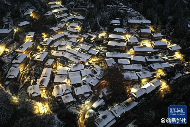 ↑这是2022年12月28日拍摄的广西融水苗族自治县杆洞乡党鸠村雪景(无人机照片)。当日,广西融水苗族自治县迎来降雪。 新华社记者 黄孝邦 摄