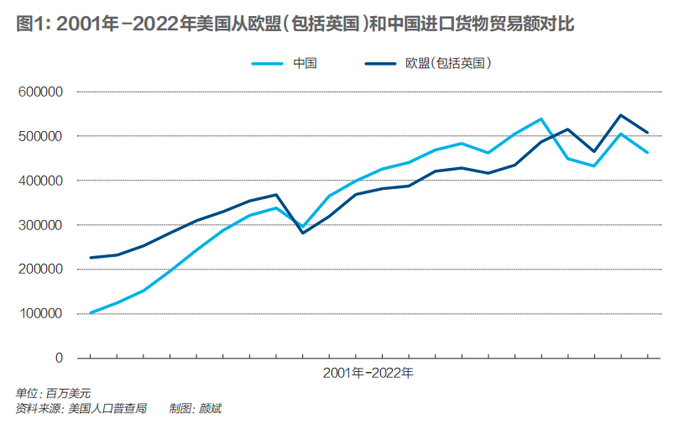 与此同时,美国和欧洲这对传统盟友之间的贸易关系继续变得更加紧密,美国对欧洲的货物贸易进口额在2018年贸易战后超越对中国的进口额,这是自中国2009年成为世界第一大出口来源国以及美国第一大进口来源国之后的巨大转变,过去一年中,跨大西洋贸易持续这一趋势。