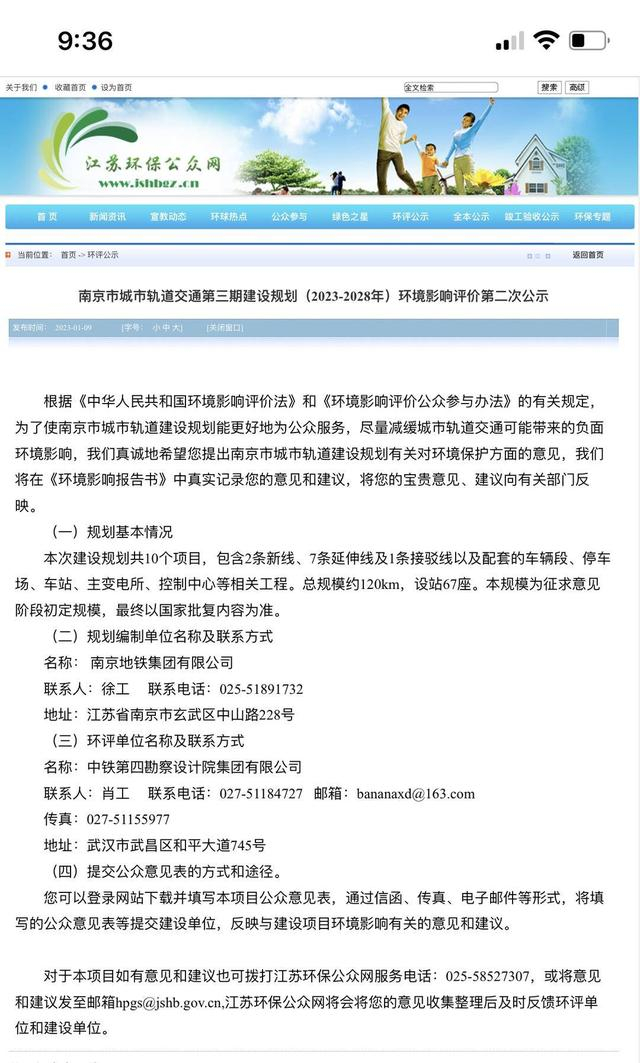 1月9日,《南京市城市轨道交通第三期建设规划(2023-2028 年)环境影响评价》进行第二次公示。记者注意到,根据公示,本次建设规划共10个项目,包含2条新线、7条延伸线及1条接驳线以及配套的车辆段、停车场、车站、主变电所、控制中心等相关工程。总规模约120km,设站67座。