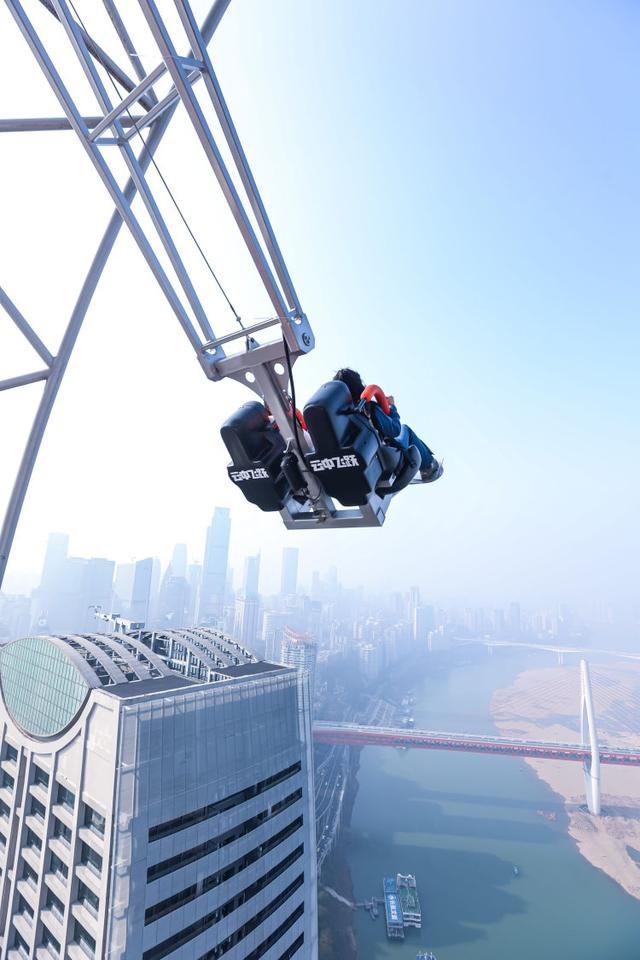 重庆来福士购物中心1月17日推出全新高空升级体验项目——云中飞跃。作为西南首个城市高空江景秋千,飞跃天际之时,还能遥看山城两江四岸绝美风景。