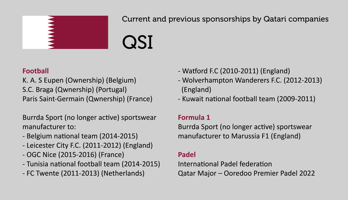 2011年,QSI在巴黎圣日耳曼遭遇资金困境时,购买了该俱乐部70%的股份。自此巴黎圣日耳曼遭也宣布迈入了“金元足球”时代,并长年“统治”法甲联赛。2017年,巴黎圣日耳曼签下姆巴佩时,2.2亿欧元的转会费更是创造了世界足坛的最高转会身价。
