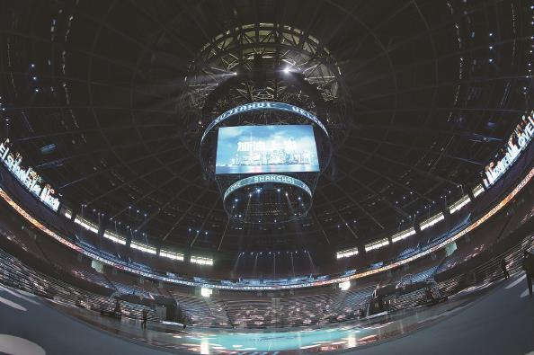 上海体育馆场地中心增加了漏斗屏