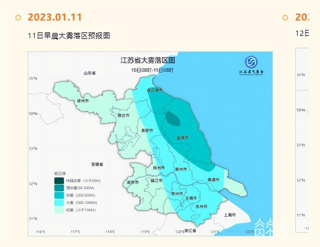同时,据江苏省气象台最新发布的气象资料分析,预计1月11日-13日江苏省将出现大范围大雾天气。