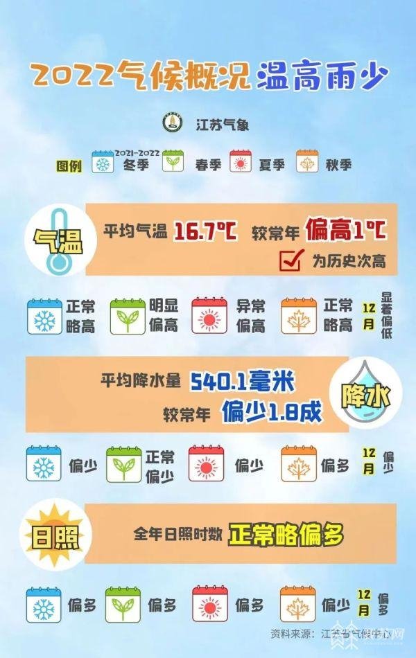 总体“温高雨少” 2022年江苏气候概况发布 11日起还将迎浓雾雨雪