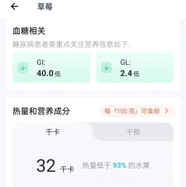 草莓虽然口感香甜,但它的含糖量在4%~7%之间,热量为32kacl/100g,糖尿病人也可以适量食用。