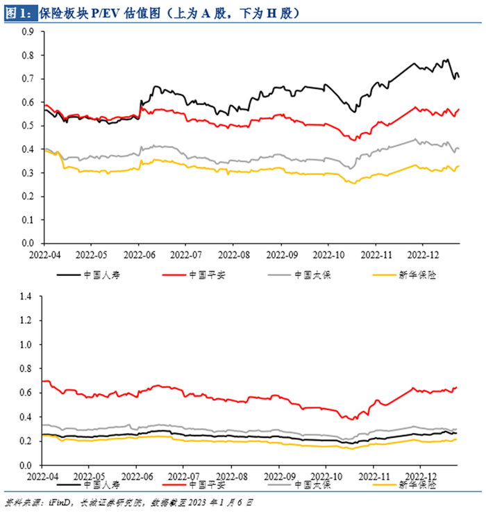 从2023年来看,保险基本面和股价核心驱动力在于资产端。一是当前10年国债收益率回调至2.83%,对保险投资端形成一定支撑;二是支持房地产行业发展的政策不断出台,地产板块预期走强将显著降低保险资产端信用风险敞口,前期地产风险事件导致的投资减值或将迎来转回,将成为保险板块反弹的驱动因素。负债端来看,随着我国防疫政策进一步优化(自2023年1月8日起,对新型冠状病毒感染实施“乙类乙管”;不再对入境人员和货物等采取检疫传染病管理措施等),长期对保险代理人的留存和增员形成一定程度友好,对行业形成正向反馈。但短期内疫情病例增多预计会影响新单修复。相对而言,率先启动开门红的中国人寿等险企受影响程度较小。叠加去年低基数下,开门红储蓄类产品符合居民资产配置需求,有望带来业绩新增量,行业开门红仍有望超预期。后续随着感染高峰的回落和居民对未来经济信心的修复、收入预期的改善,以及健康管理意识的提升,都将有助于带动保险消费增长。