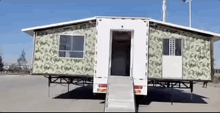 动动手指头,几十米长的庞然大物会先像猫一样伸个懒腰,接着像老鹰一样展开翅膀,然后又像穿山甲一样卷曲身体,最后定型成一套内部实用面积超过100平米的房子,其他B型、C型房车见了都得喊一声大哥大。