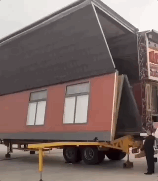 看着半挂式卡车缓缓地张开翅膀,有一种看见现实版哈尔移动城堡的错愕感。