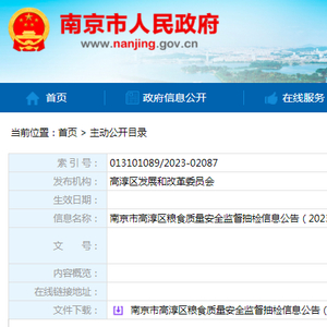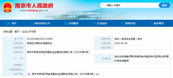 中国质量新闻网讯 近日,南京市人民政府网站发布高淳区粮食质量安全监督抽检信息公告(2023年第1期)。