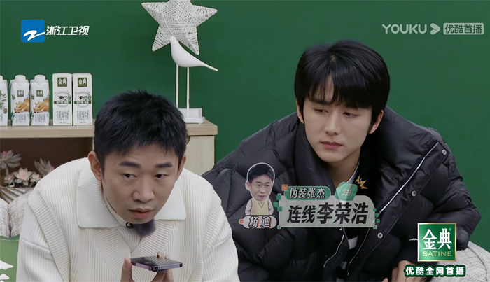 接下来自然就需要一些让大家快速熟悉的游戏。《我们的客栈》第一期中有一半的时间主要玩了两个游戏,其一是嘉宾们隐瞒身份、模仿某一嘉宾的声音给朋友打电话,最早被对方识破的人要洗碗干活儿。比如杨迪要伪装成张杰连线李荣浩,庄达菲模仿唐嫣的声音连线孙坚。