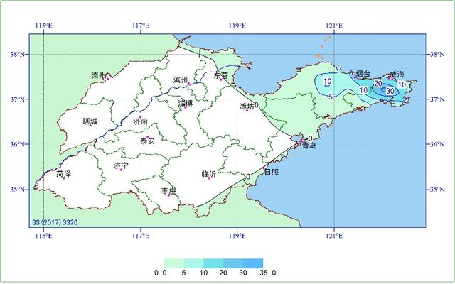 受强冷空气影响,11月30日—12月2日、12月16—18日、12月21—24日,山东半岛连续出现3次冷流暴雪,为2005年以来罕见。强降雪主要集中在威海和烟台地区,威海泊于降雪量最大达63.2毫米,共7站积雪深度超过10厘米,文登站最大积雪深度达35.0厘米。