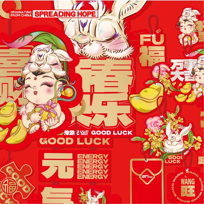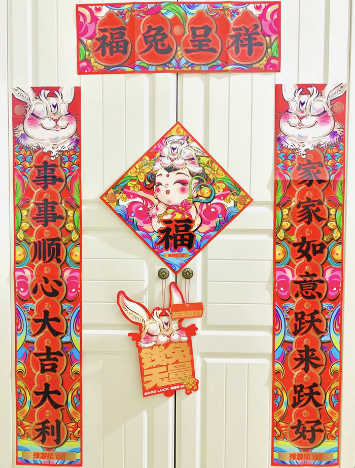 一打开礼盒,扑面而来的全是可爱的新春气息。救命,这个对联也太cute了吧!萌乎乎的兔叽,一眼心动!