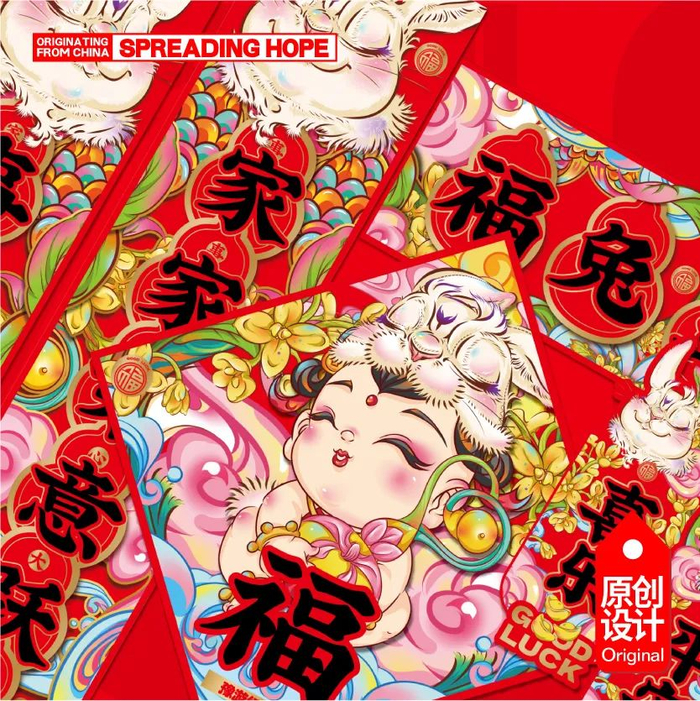 门芯的年画娃娃更是精致,很特别的手绘风,活泼俏皮!丰富寓意的纹样,把新春祝福涵盖的满满当当!