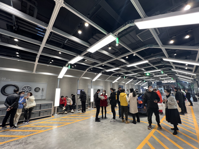 2023年新年第一天,特斯拉率先推出“沉浸式”体验新场景。1月7日,成都市民邹韵来到太古里特斯拉门店,她惊喜地发现这里已经变身为全球首家特斯拉超级工厂车间主题店。在这个名为“极佳”的沉浸空间里,通过一条生产线+三大展区,将特斯拉上海超级工厂的总装车间“搬”到了店内。