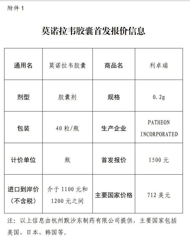 公告称,近日,国家医疗保障局办公室印发《新冠治疗药品价格形成指引(试行)》,2023年1月1日起批准上市的抗新冠病毒的创新治疗药品采取首发报价集中受理。杭州默沙东制药有限公司主动参照有关要求,就此前附条件批准上市的莫诺拉韦胶囊提交了首发报价和有关资料。