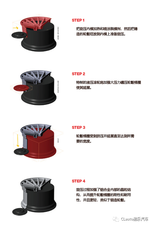 旋压工艺在加强铝合金内部晶粒结构的同时又能保留外观形状的完整性,从而制造出更坚固、更轻以及更薄的、像锻造的轮毂桶圈。